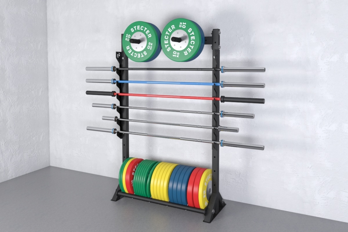 Удобство хранения дисков. В последнее время появилось много разновидностей дисков для штанги: каучуковые блины, соревновательные диски, бамперные (HI-TEMP) блины. Все они имеют различную толщину и не совсем удобно их хранить в отсеках с фиксированной шириной. Компания STECTER предлагает уникальную конструкцию полки. Она имеет специальную перфорацию. В данные отверстия устанавливаются специальные разделительные прутки. Вы можете их переставлять и сами выбирать оптимальную ширину отсеков для каждого вида дисков, либо совсем убрать и использовать полку без разделения на отсеки.