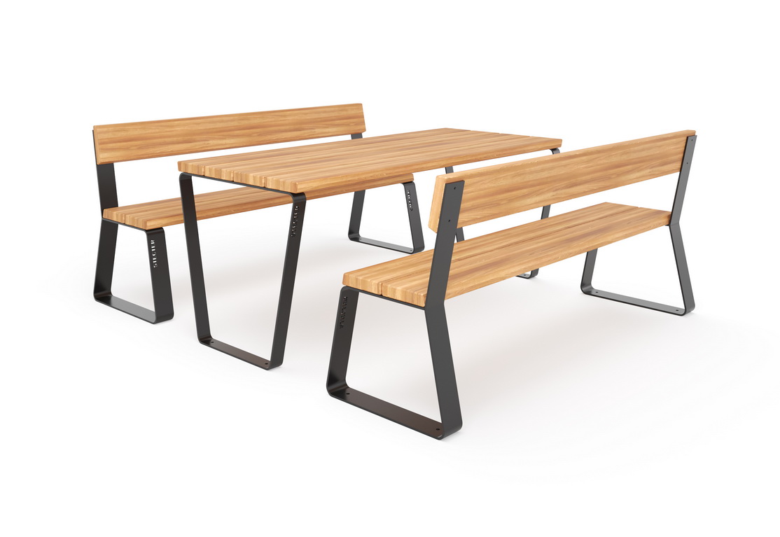 Комплект “Фиеста” включает стол и две лавочки со спинками. Изготовлены в популярном сочетании металла и дерева, из высококачественных материалов.