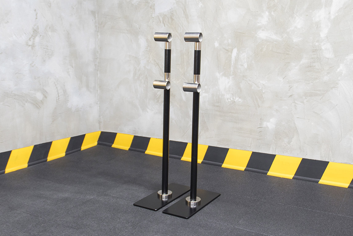 Плоское основание на каждой стойке – толщина составляет всего 10 мм. Оно имеет прямоугольную форму размером 490х185 мм. Кромки по периметру основания притуплены, чтобы исключить вероятность получения травмы. Эргономичная форма утяжелителей позволяет максимально задействовать пространство около хореографического станка.