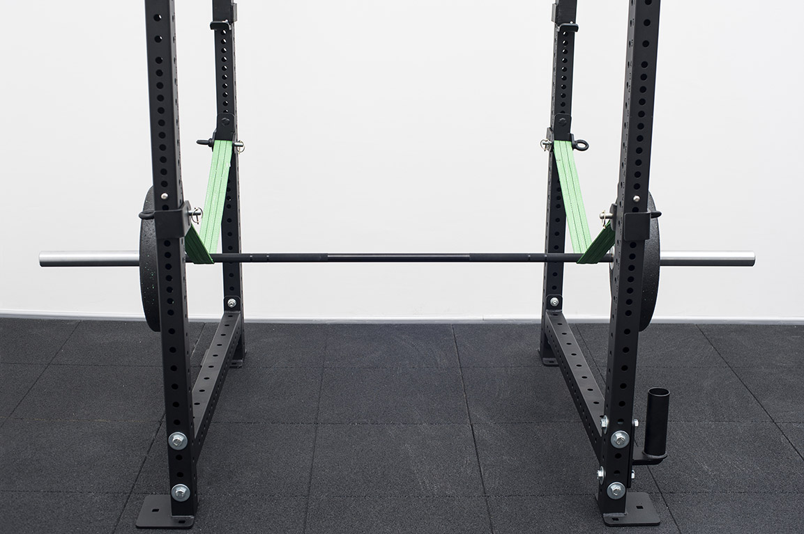 Новая система безопасности при тренировках с штангой представляет собой простое и надежное средство защиты как атлетов, так и оборудования даже при самых тяжелых нагрузках. Одним из основных преимуществ данной страховочной системы перед страховочным упором "Труба" является возможность установки кронштейнов стропы на различной высоте. Таким образом Атлет может запланировать направление скатывания грифа "от себя".
