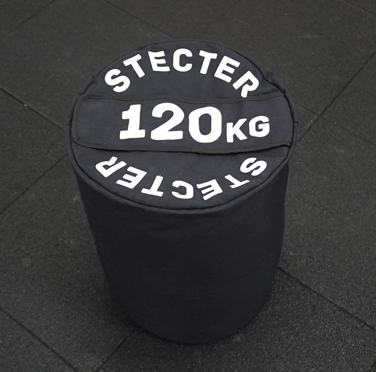 Компания Stecter выпускает песочные мешки для стронгменов с диапазоном веса от 40 до 120 кг. Их диаметр составляет – 40 см и отличие заключается лишь в высоте. Каждый элемент состоит из двух слоев. Первый – внутренний филлер с удобным клапаном для песка, который застегивается на дополнительные липучки. Поверху надевается дополнительный чехол из прочной ткани кордуры, чтобы песок не просыпался. Кордура – специализированная долговечная ткань, устойчивая к серьезным нагрузкам. Она имеет водоотталкивающую пропитку, что делает ее идеальным материалом для спортивных тренировок.