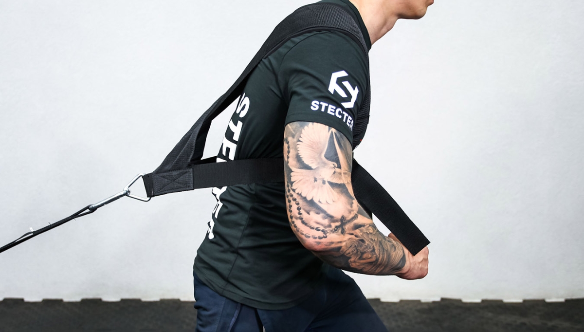Высокопрочные стропы для тренировочных саней поставляются в комплекте с двойной лямкой длиной 3 метра и стальными карабинами. Быстросъемный жилет сшит прочными нитями из широкой нейлоновой ленты. С внутренней стороны лента имеет мягкую подкладку из вспененного материала. Комбинация широкой ленты и мягкой подкладки использована для повышения комфорта во время тренировки, т.к. чаще всего производители используют узкие стропы и они сильно "врезаются" в плечо.
