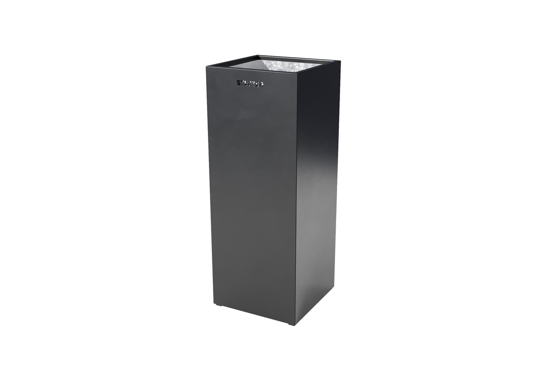 Металл окрашивается порошковой краской. Далее, покрывается средствами для защиты от коррозии и сохранения внешнего вида. Стационарный, используется для напольной установки. Его внушительные размеры защищают от внешних механических воздействий, сильного ветра. Такие изделия отличаются высокой прочностью и прослужат многие года.
