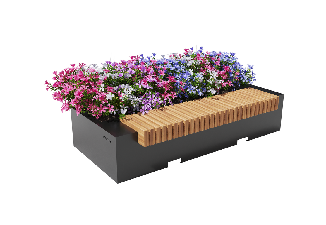 Цветочница с лавочкой “Фибо” прекрасно впишется в городской парк, сквер или набережную. Выполнена из металла и дерева. Металл окрашивается порошковой краской. Далее, покрывается средствами для защиты от коррозии и сохранения внешнего вида. Натуральное дерево защищено специальной лессирующей пропиткой, террасным маслом. Устойчиво к образованию грибка, плесени. Стационарный, используется для напольной установки. Его внушительные размеры защищают от внешних механических воздействий, сильного ветра. Такие изделия отличаются высокой прочностью и прослужат многие года.