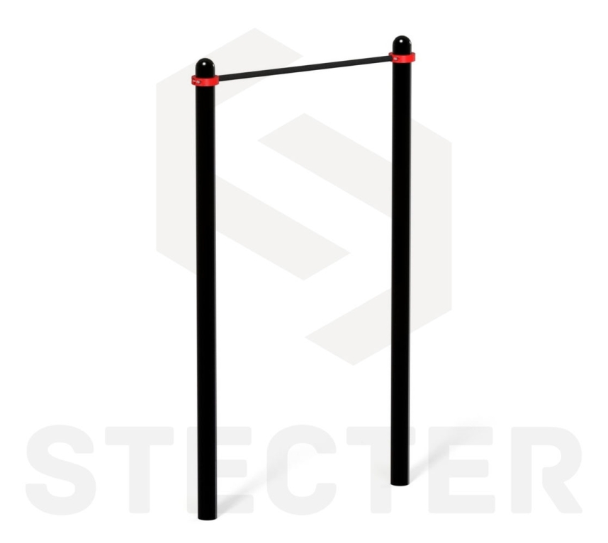 Высота опорных столбов составляет 2600 миллиметров. Сверху они закрыты полусферическими заглушками. На высоте 2400 мм закрепляется перекладина, которая удерживается стальными хомутами. Благодаря такой конструкции её высоту можно отрегулировать в соответствии с требованиями спортсменов. Длина перекладины 1200 мм.