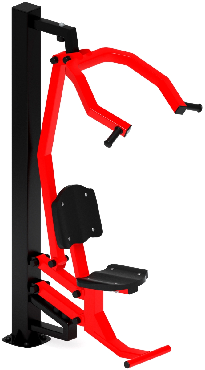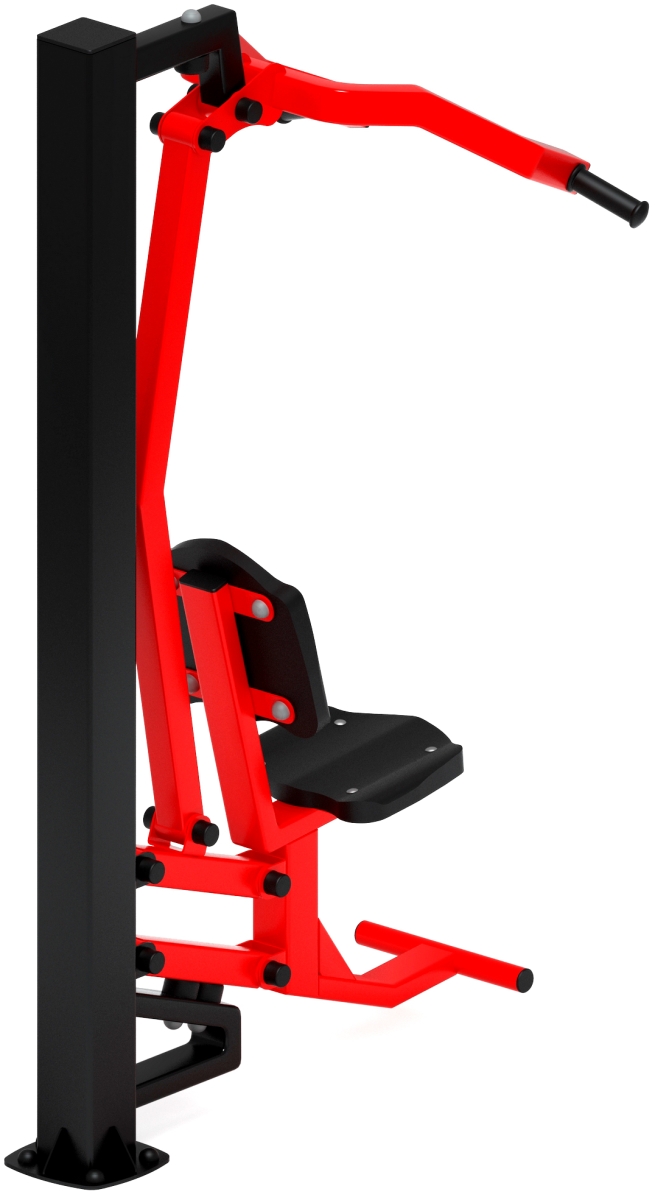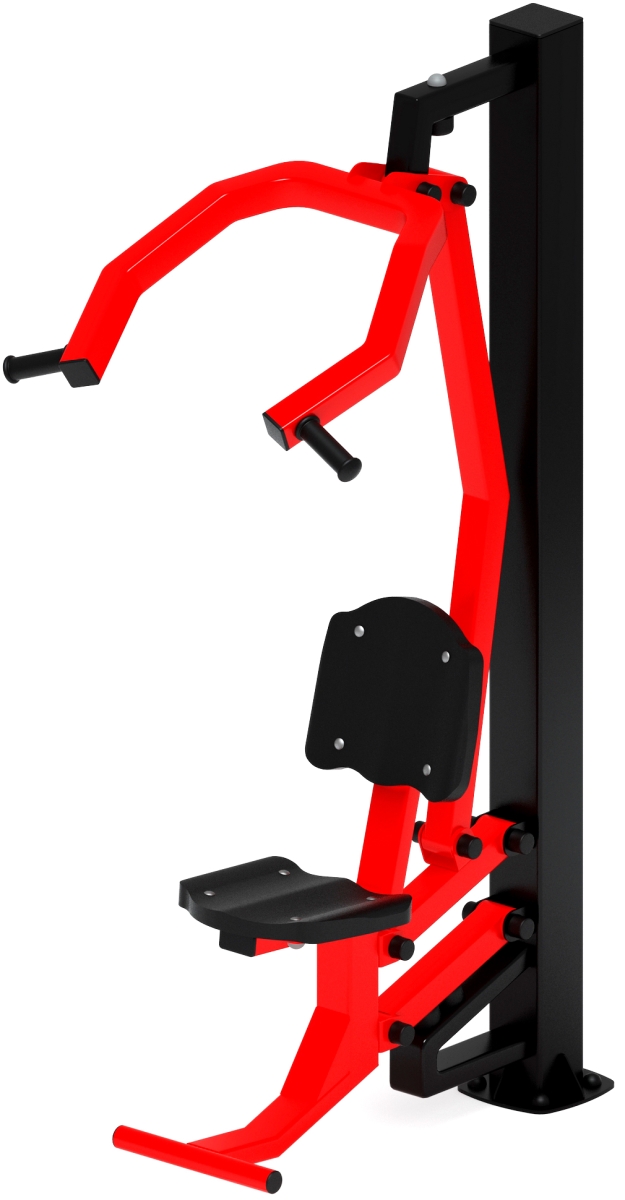 Тренажер укрепляет широчайшие мышцы спины, бицепс и задние пучки дельтовидных.