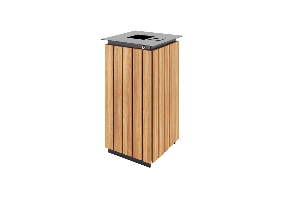 Уличная урна “Канти” изготовлена из металла и дерева. Металлический каркас покрывается порошковой краской. Далее, средствами для защиты от коррозии и сохранения внешнего вида. Деревянные брусья надежно прикреплены металлу и обрабатываются лессирующей пропиткой и террасным маслом. Это делается для придания дереву нужного цветового оттенка и уменьшения влияния осадков, резких перепадов температур. Три варианта покрытия древесины: тик, махагон и палисандр. Лаконичный и стильный дизайн урны “Канти” выгодно дополнит скверы, парки и другие общественные места.