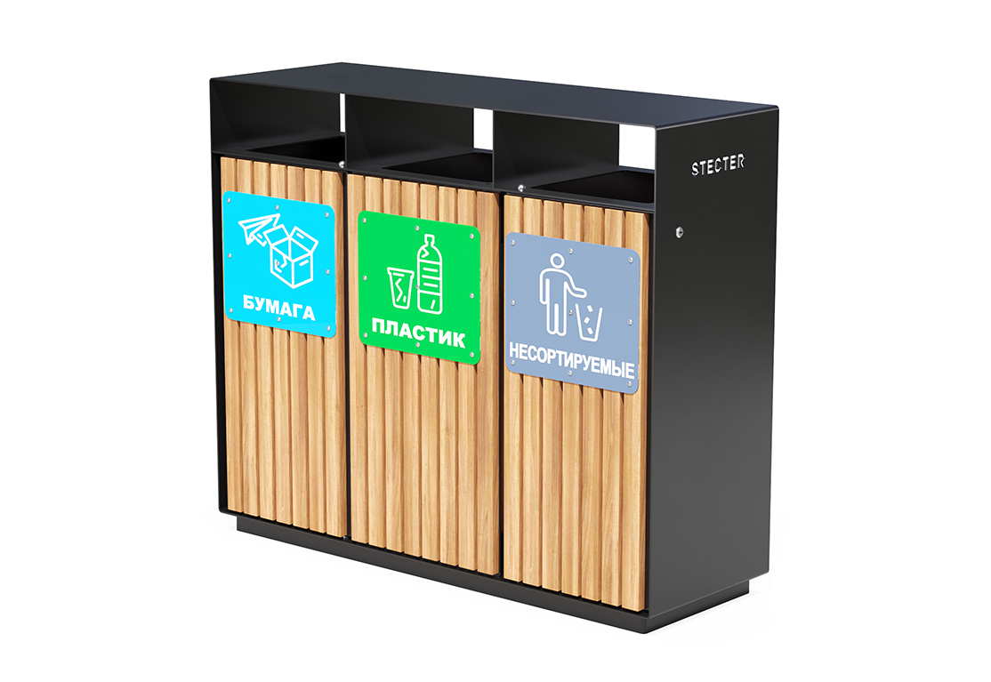 Тройная урна Модерн для раздельного сбора мусора