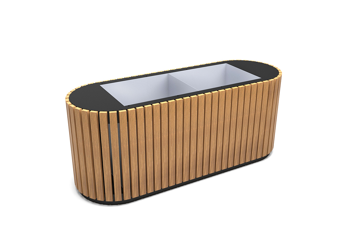 Вазон для цветов “Ялта” имеет лаконичный дизайн, прекрасно впишется на любой садовый участок, городской парк, сквер или набережную. Изготовлен в популярном сочетании металла и дерева, из высококачественных материалов. Деревянные элементы покрыты специальной лессирующей пропиткой и террасным маслом, для придания дереву нужного цветового оттенка и уменьшения влияния осадков. Варианты покрытия древесины: тик, махагон или палисандр. Металлический каркас окрашивается порошковой краской. Далее, покрывается средствами для защиты от коррозии и сохранения внешнего вида. Стационарный, используется для напольной установки. Его внушительные размеры защищают от внешних механических воздействий, сильного ветра.