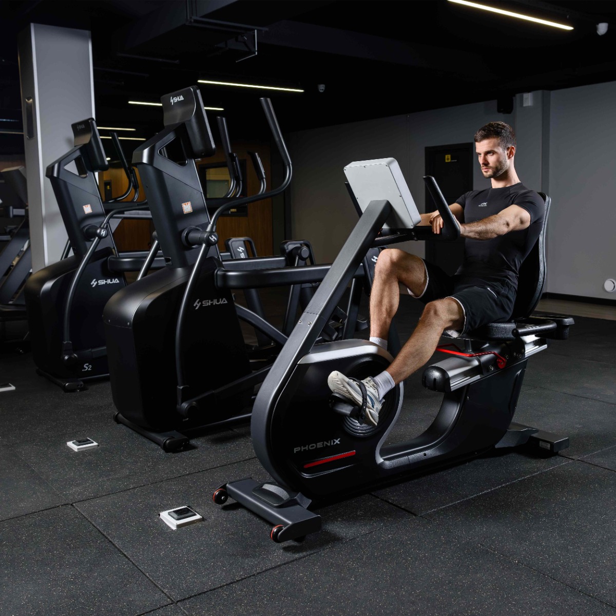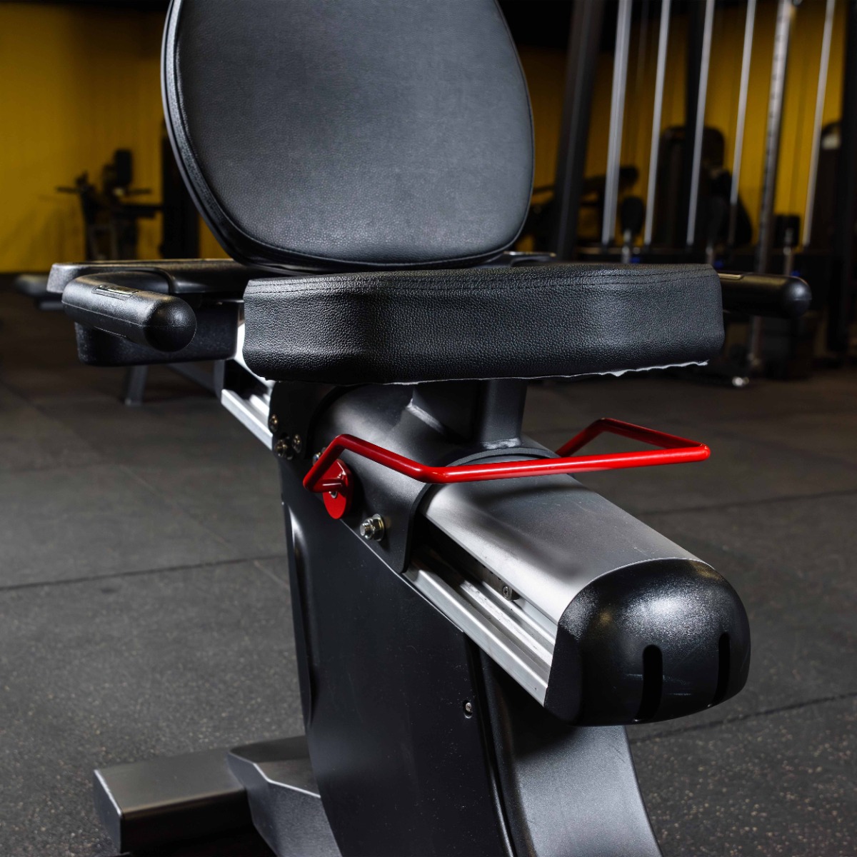 Рукоятки с прорезиненным неабсорбирующим влагу покрытием расположены вдоль сиденья, оснащены парой датчиков пульса.