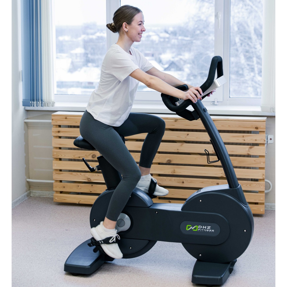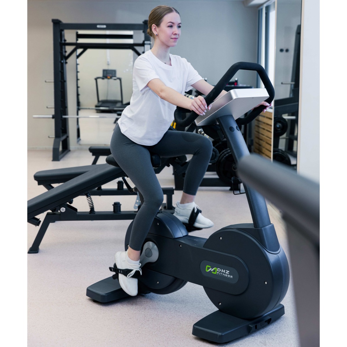 Профессиональный Велотренажер вертикальный DHZ X-9107 предназначен для высокоинтенсивной аэробной нагрузки и длительного непрерывного использования.