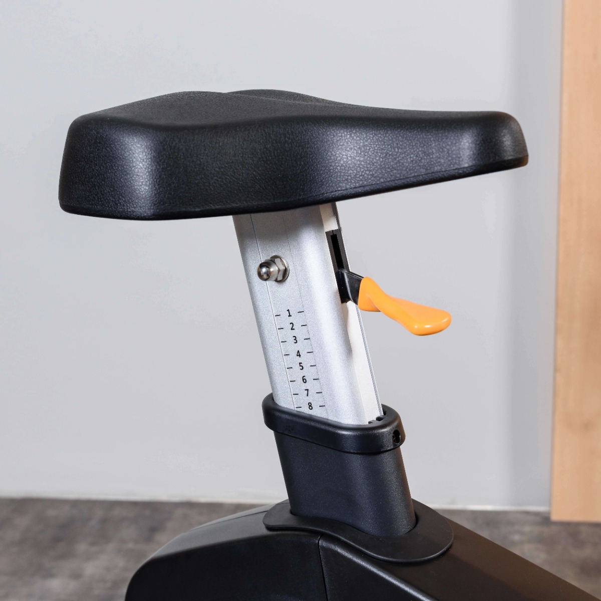 Комфортное широкое седло из пенополиуретана обеспечивает ровную посадку, при этом позволяет включать в работу верхнюю часть тела во время выполнения упражнения.